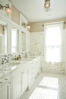 This photo shows a beautiful Calcutta Marble vanity top. Notice how the pattern is more defined.